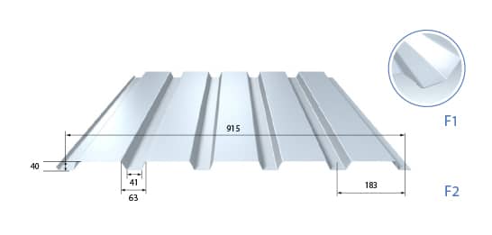 Type : profil de bardage trapézoïdalLargeur utile : 915 mm