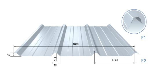 Type : profil de couverture sèche trapézoïdalLargeur utile : 1000 mm