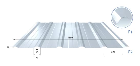 Type : profil de couverture sèche trapézoïdalLargeur utile : 1100 mm