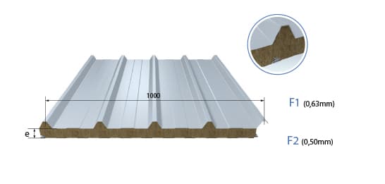 Type : panneau sandwich de toitureLargeur utile : 1000 mm