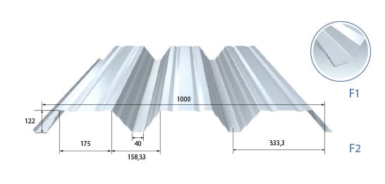 Vous êtes ici : Accueil > Couverture & étanchéité > Solaire / photovoltaïque > Nervo-Sopra 122 (isolant perlite + PUR, grands modules 1800x1200mm)