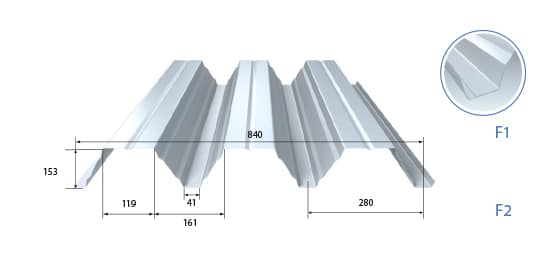 Acier : tôle d’acier galvanisé en continu S320GD (NF EN 10346 / NF P 34-310)Revêtements : prélaquage NF EN 10169+A1 / NF P 34-301