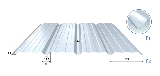 Acier : tôle d’acier galvanisé en continu S320GD (NF EN 10346 / NF P 34-310)Revêtements : prélaquage NF EN 10169+A1 / NF P 34-301
