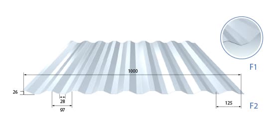Type : profil de bardage trapézoïdalLargeur utile : 1000 mm