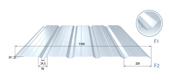 Type : profil de bardage trapézoïdalLargeur utile : 1100 mm