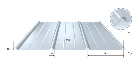 Type : profil de couverture sèche trapézoïdalLargeur utile : 850 mm